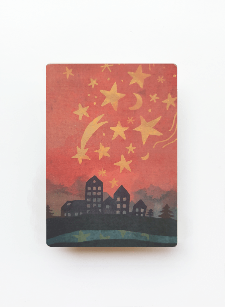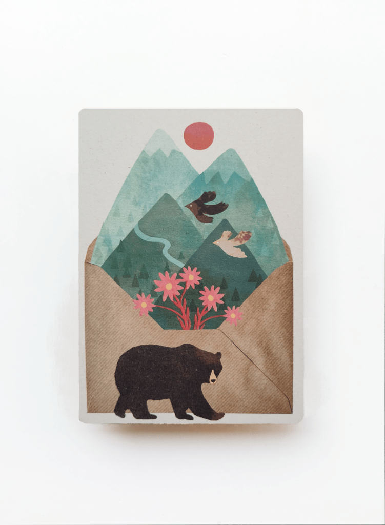 Madame Ziba maakt kleurrijke kaarten op duurzaam papier.